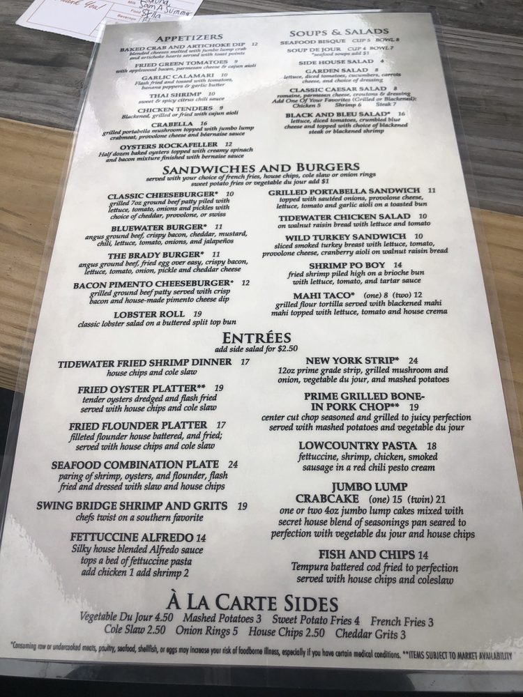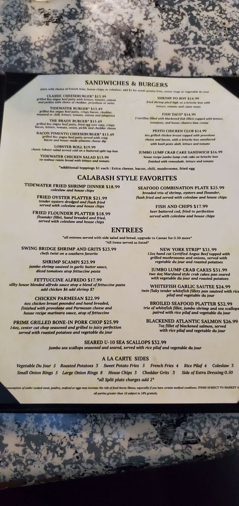 Welcome to Tidewater Grill and Bistro, where the flavors of New American cuisine meet the fresh bounty of the sea. Nestled in North Myrtle Beach, this cozy spot is a gem for seafood lovers and offers a wide variety of dishes to tantalize your taste buds. The menu features highlights like the Broiled Seafood Platter, a delightful trio of whitefish, jumbo shrimp, and sea scallops, and the Chef’s imaginative take on Shrimp and Grits, infused with seasoned shrimp and smoked sausage.
